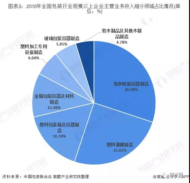 2019年我國紙包裝行業(yè)發(fā)展及市場供給現(xiàn)狀分析,紙包裝為包裝業(yè)最大細(xì)分市場。我國包裝行業(yè)的產(chǎn)品主要包括紙包裝、塑料包裝、金屬包裝、玻璃包裝、包裝機械。其中,紙包裝是包裝行業(yè)最重要的組成部分,在食品、藥品、家用電器、文化用品等領(lǐng)域廣泛應(yīng)用。2018年,紙和紙板容器制造業(yè)規(guī)模以上企業(yè)實現(xiàn)主營業(yè)務(wù)收入2919.05億元,占整個包裝產(chǎn)業(yè)規(guī)模以上企業(yè)主營業(yè)務(wù)收入的30.08%,在所有細(xì)分領(lǐng)域中占比最高。